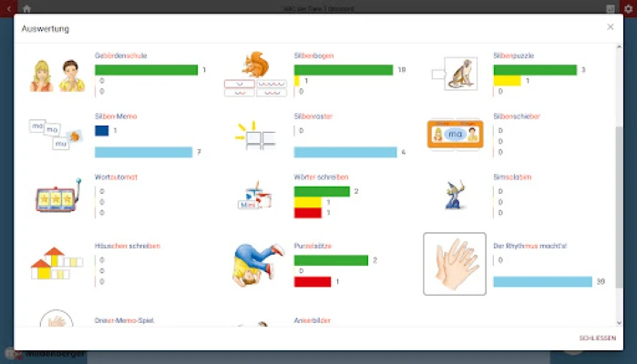 Základem úspěchu aplikace ABC der Tiere-App je její propracovaná slabiková metoda, která se opírá o dlouholeté pedagogické zkušenosti. Díky barevnému oddělovači slabik je proces učení intuitivní a přístupný každému dítěti. Klíčová cvičení, jako například „Fibeltexte zum Mitlesen", převádějí texty do vizuálně oddělených slabik. Jednoduchým klepnutím se slabiky postupně zobrazují zleva doprava, což upevňuje správný směr čtení. Děti vnímají slabiky nejen vizuálně, ale i hapticky a akusticky (při zapnutém zvuku), čímž se efektivně propojuje mluvená řeč s jejím písemným ztvárněním. Každé dítě si navíc určuje vlastní tempo, což umožňuje plné soustředění na aktuálně zobrazovanou slabiku a opakování cvičení dle potřeby.