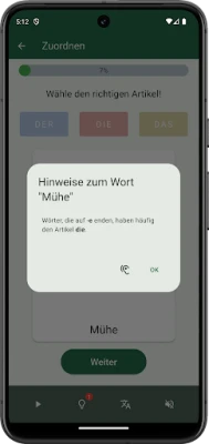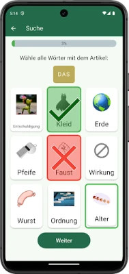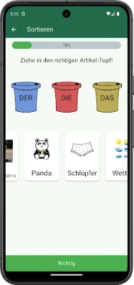 Aplikace "Das Die Der – Artikel lernen" zdokonaluje znalost německých členů u podstatných jmen. Skvěle se hodí pro výuku jazyků a logopedii. Intenzivně a hravě procvičuje správné členy pro širokou škálu jmen, čímž snižuje chyby při ústním projevu.