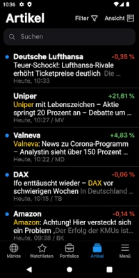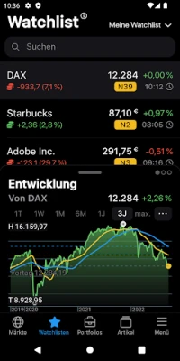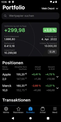 Vytvářejte si personalizované seznamy sledovaných titulů a získejte okamžitá push oznámení, jakmile redakce DER AKTIONÄR publikuje zprávu o vámi vybrané akcii. Tyto seznamy se automaticky synchronizují prostřednictvím vašeho účtu Börsenmedien. Pro dokonalý přehled máte možnost ručně spravovat nákupní ceny a množství, stejně jako pořadí položek. Rychlé sparkline grafy vám na první pohled ukážou denní vývoj akcií. S funkcí portfolia můžete bez obav testovat své investiční strategie a simulovat je v bezpečném prostředí, než je převedete do reálného depa. Vše, co potřebujete, je bezplatný účet u Börsenmedien. Analyzujte trhy s detailními grafy, které zobrazují vývoj v časových intervalech od jednoho dne až po tři roky, a to v procentuálním i absolutním vyjádření. Prozkoumejte rozsáhlý vesmír tisíců akcií z klíčových světových indexů jako DAX, S&P 500, Nasdaq 100, komodity, měny a vybrané deriváty. Ke všem monitorovaným hodnotám najdete relevantní klíčové ukazatele, technicky významné úrovně a srovnatelné skupiny.