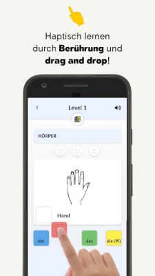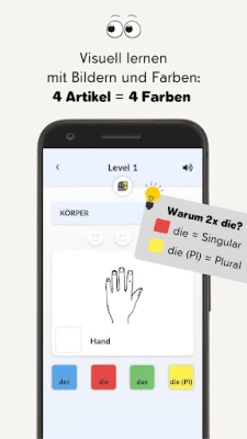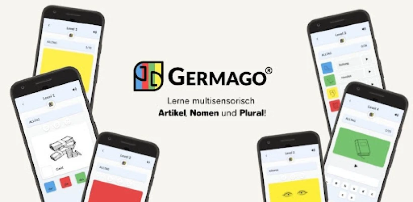 GERMAGO®-App využívá multisenzorické a vizuální metody pro rychlé a efektivní učení německých členů (der, die, das), podstatných jmen a jejich množného čísla. Dosáhněte lepších výsledků a rozšiřte si německou slovní zásobu.