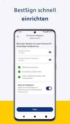Postbank BestSign-App je speciální aplikace pro bezpečné schvalování transakcí v online bankovnictví. Zahrnuje výhradně bezpečnostní postup BestSign. Po jednorázovém nastavení a aktivaci je BestSign připraven k použití pro všechna vaše potvrzení.