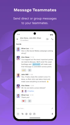 Rozšiřte své možnosti komunikace s Pumble, které vám umožní nejen textovou výměnu, ale i plnohodnotné multimediální zprávy. Posílejte rychlé zvukové poznámky nebo detailní video zprávy pro lepší vyjádření. Potřebujete se spojit tváří v tvář? Snadno generujte odkazy na online schůzky přímo v aplikaci a okamžitě se připojte k video nebo audio hovorům. Navíc, sdílení souborů, dokumentů, obrázků a odkazů je hračka, což z Pumble dělá centrální uzel pro veškerou týmovou spolupráci a výměnu informací.